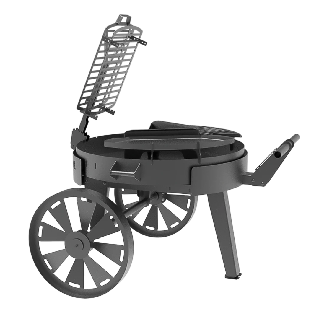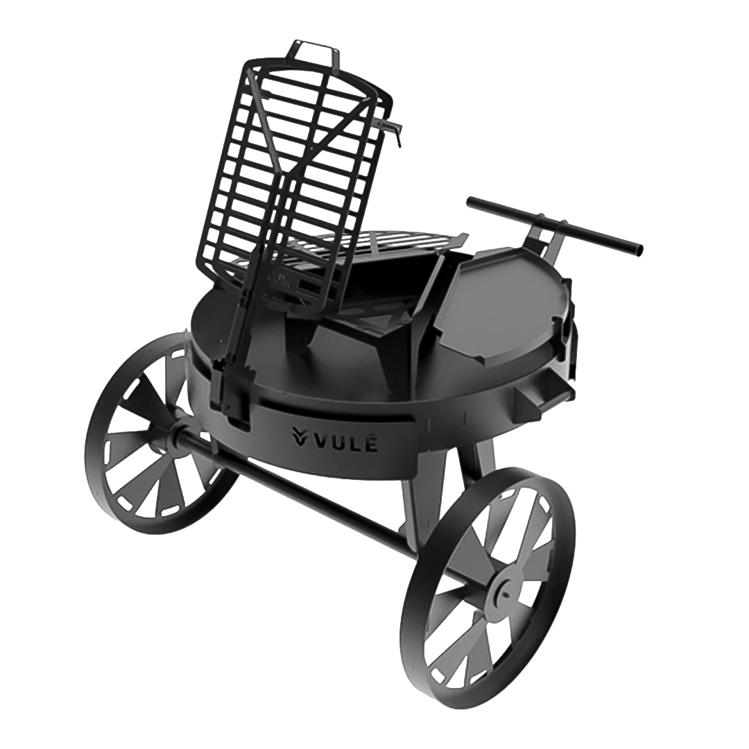 Asador versátil de cómodo tamaño con el carro accesorio exclusivo, para llevarlo fácilmente al ambiente que se necesite. Gracias a las asas de transporte que facilitan el movimiento del conjunto, y al sólido carro adaptable para discos de 80 cm de diámetro, este producto está diseñado para que lo traslades hasta donde más te guste. Reunite y disfrutá del fuego y la buena compañía con tu fogonero VULE.